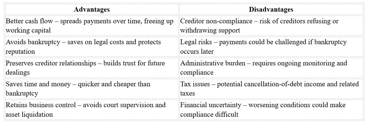 - Benefits: Avoid bankruptcy, improve cash flow, and maintain creditor trust.